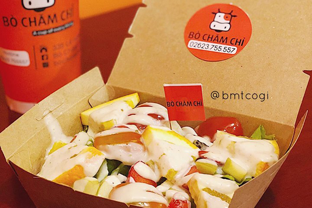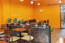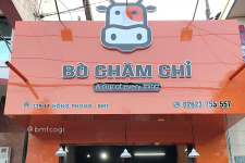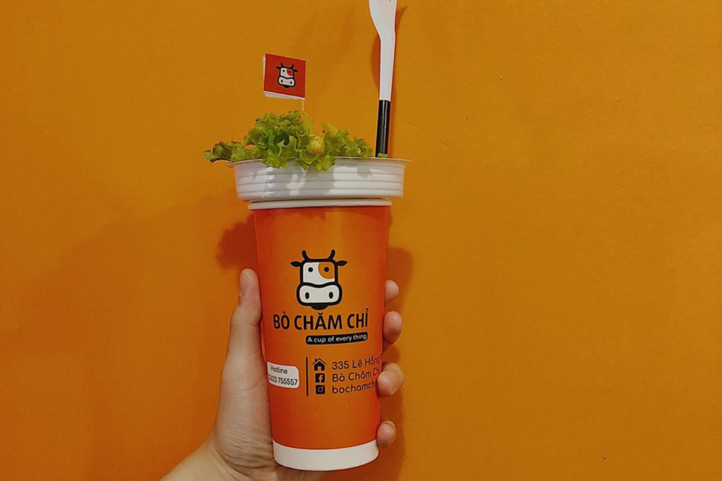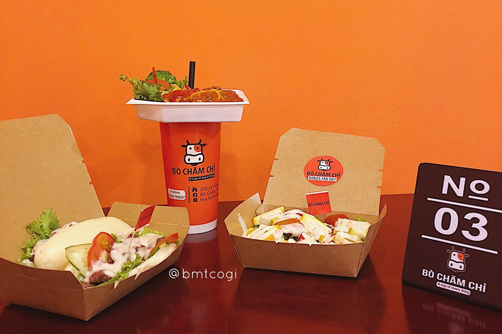 Bò Chăm Chỉ là quán ăn được decor xinh với tone cam cực kỳ bắt mắt, quán có bán take away và ăn tại chỗ.